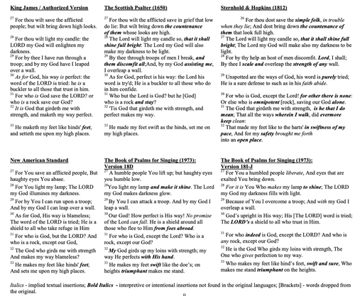 Let the following table be listed for the evaluation of the claim of being 100% “inspired Psalms” from Psalm 18:27-33.