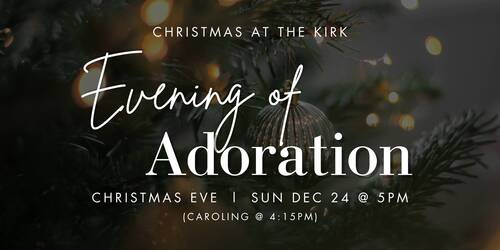 - Special gathering on Christmas Eve - Regardless of which day Christmas Eve falls, we will gather that night again at 5pm to worship our Lord. We call it our Evening of Adoration. On that night in addition to our favorite hymns, we should expect to hear a special message on Christ’s coming and incarnation preached by one of our pastors. We also are starting new tradition this year, in which we are planning to gather at least 30mins early (4:15 pm) to walk the neighborhood surrounding the church caroling and inviting all that hear to church. So, dress appropriately and invite your friends and let us adore our newborn King!