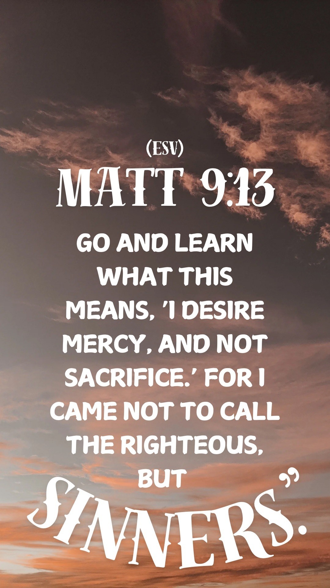 “Go and learn what this means, ‘I desire mercy, and not sacrifice.’ For I came not to call the righteous, but sinners”