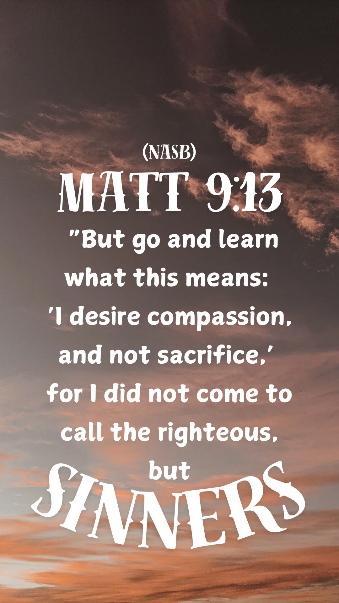 “But go and learn what this means: ‘I desire compassion, and not sacrifice,’ for I did not come to call the righteous, but sinners. ”